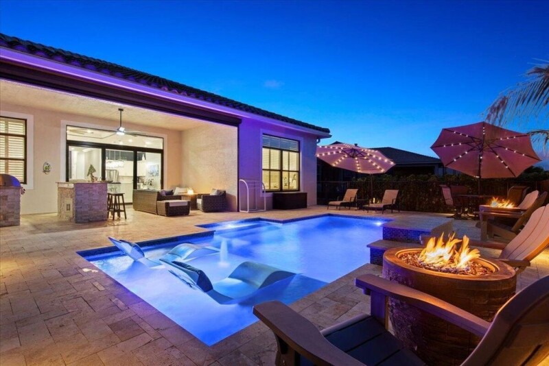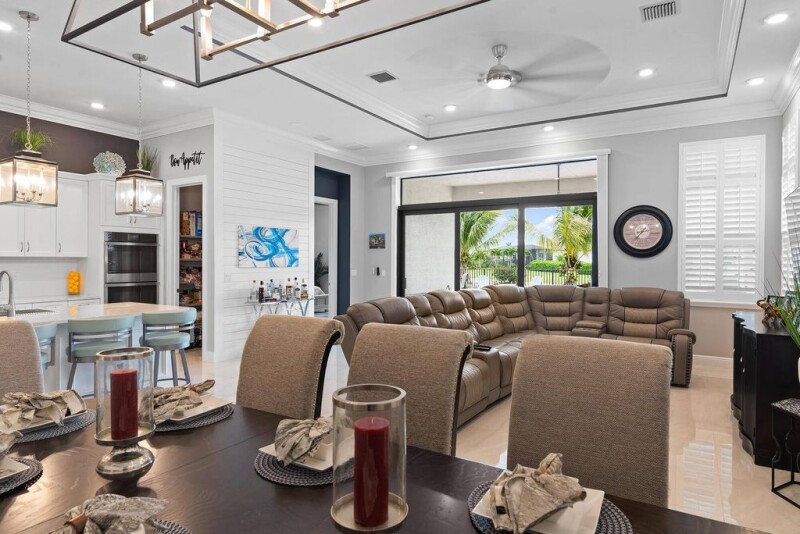 CURRENT PRICE IS BELOW MARKET PRICE AND BELOW BUILDER'S PRICE WITH THIS UPGRADE PACKAGE. AT THIS PRICE IT WILL NOT LAST! This stunning pool home is brimming with upgrades, a real SHOW-STOPPER in the amazing gated development PGA Verano on a gorgeous landscaped lot with amazing long lake views! Elegant & Sophisticated in EVERY DETAIL, this 4 Brm + Den floor plan has the builder option 2nd story bonus room! The moment you walk into this immaculate light filled home you are captivated by features, from 24x24 porcelain tiles in living areas & bamboo wood floors in primary BRM & DEN all done with tasteful custom moldings throughout, high end designer window treatments, light fixtures & ceiling fans. Enjoy Florida's outdoor living in a Hawaiian Blue gem-finished pool.