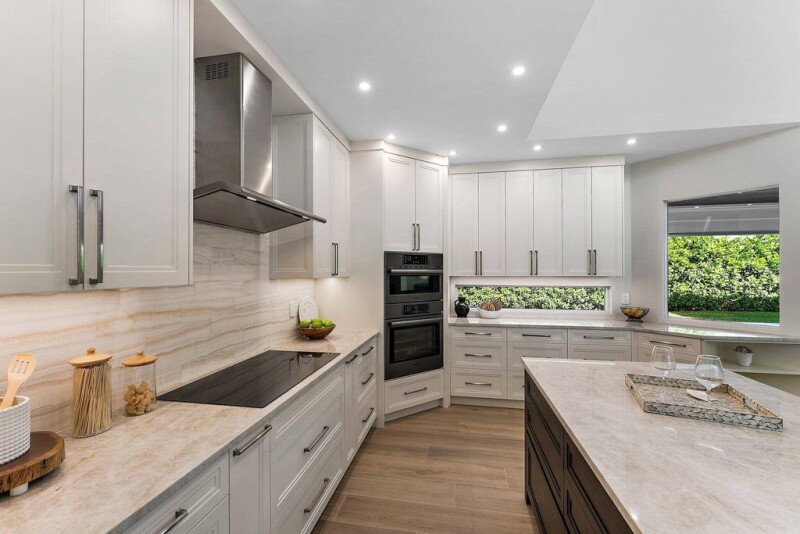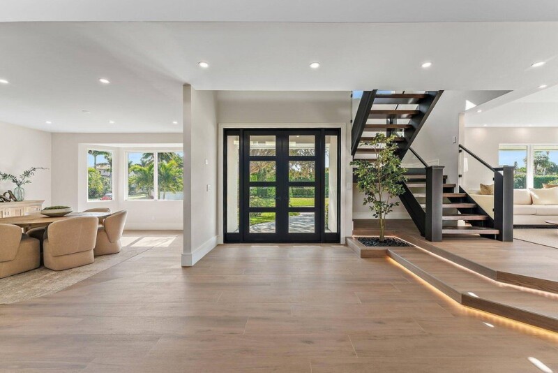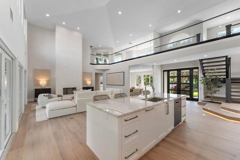 Fully renovated in 2024, this four-bedroom, three bathroom home in Rolling Hills offers the perfect blend of modern luxury and coastal tranquility. Just one lot from the Intracoastal, and 0.3 miles to the beach, it features a breathtaking two-story entry with glass railings, floating stairs, a stone fireplace and wood-look porcelain. The open floor plan is designed for effortless living, with elevated ceilings and expansive windows allowing natural light to flow throughout. The chef's kitchen is a masterpiece, boasting dual islands, high-end appliances, an onyx backsplash, quartzite countertops, and abundant storage space for all your culinary needs. Conveniently located next to the kitchen, the spacious laundry room features raised countertops, ample storage, a stainless steel sink,.