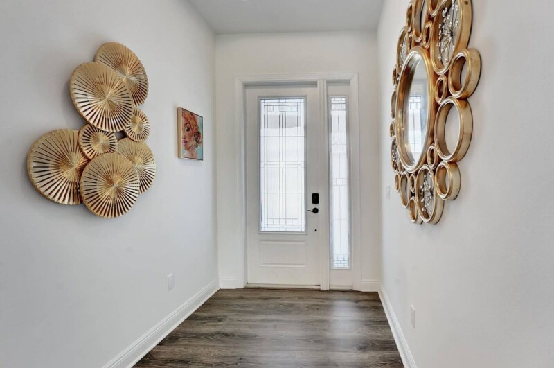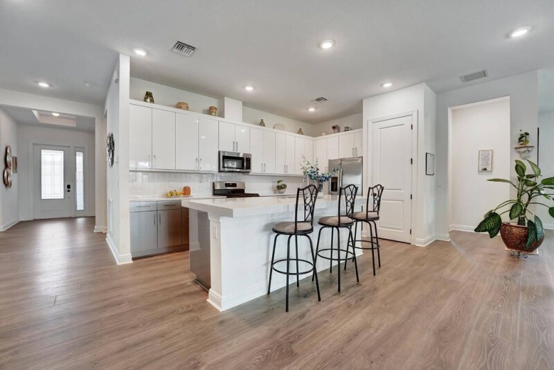 Experience the luxury of living in this exquisite Home. Featuring 4 bedrooms, 3 bathrooms, and a spacious 3-car garage, this home is a standout. The open-concept floor plan boasts a seamless flow between the living, dining, and kitchen areas, which is a dream, equipped with upgraded soft-close cabinets, double quartz countertops, a gas stovetop, convenient pots and pans drawers, and an oversized island. Throughout the home, enjoy title flooring, cam lighting, and impact windows. Retreat to the luxurious master suite, where tranquility awaits with a spacious layout and private ensuite bathroom showcasing upgraded cabinets, quartz countertops, mirrors, upgraded light fixtures, and a frameless shower enclosure.