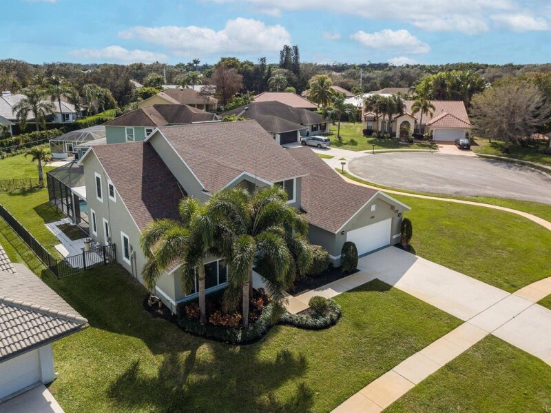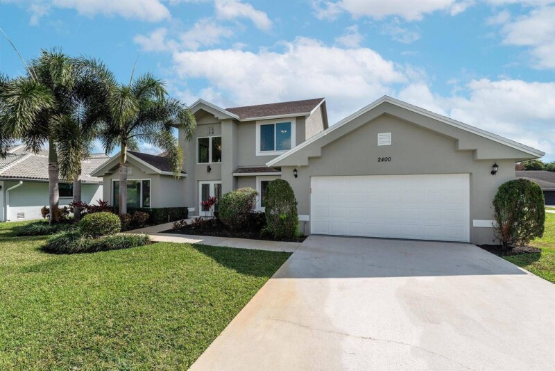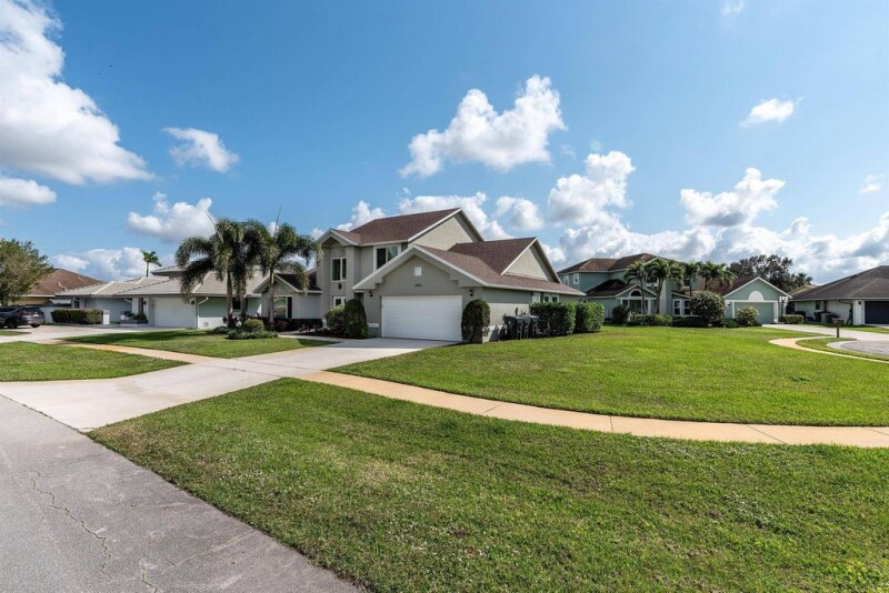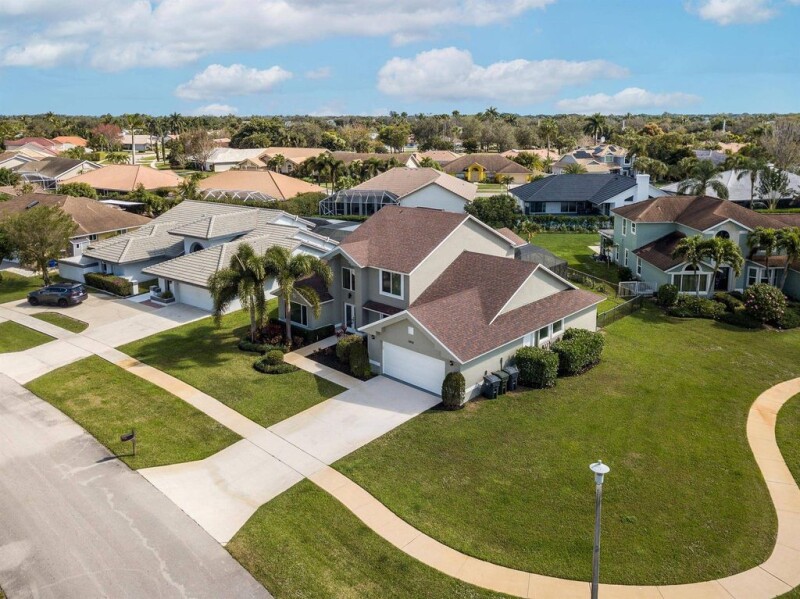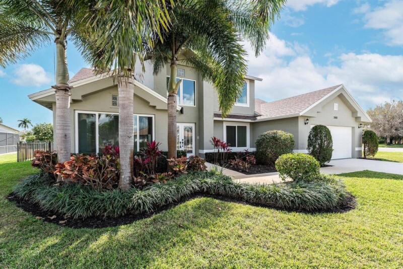 Massive 4-bedroom, 3.5-bathroom CBS pool home in the desirable Greenshores of Wellington community. A+ rated schools, no HOA, and over 3,000 sq ft of living space on a corner lot. Features impact windows, a 2018 roof, and two AC units. The ground-floor master suite boasts dual vanities and a large soaker tub. Renovated kitchen with stainless steel appliances, granite countertops, and an open floor plan including an eat-in kitchen, formal dining room, and office/flex space. Updated half bath with a wet bar area. Upstairs offers a second master-sized bedroom, two additional bedrooms, and an updated bathroom. Wood laminate flooring throughout the upper level. Enjoy the screened pool area and two-car garage. Community amenities include basketball courts and a playground.
