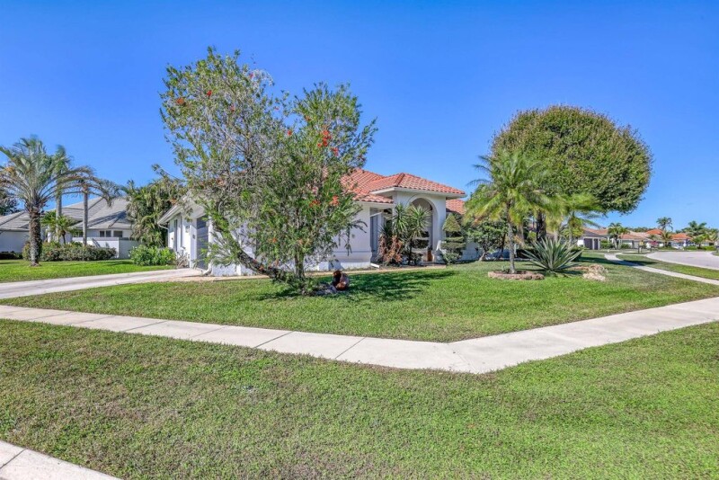 PRICED $30,000 BELOW APPRAISAL VALUE! Home is on the corner of a cul-de-sac boasting a screened & heated pool w/Stamped concrete deck, private yard w/water view, exterior painted 2024, gutters, 2015 Barrel tile roof, Accordion Shutters and Impact Windows, wood patio ceiling, marble pavers to 2024 Impact double front doors, dawn-to-dusk lights & full house surge protector. Interior offers crown molding thru-out, vaulted ceilings, 2022 Kitchen appliances, laundry rm w/plenty of storage. multiple fans, Bedrooms boasting custom closets, Cabana bath,4 sets of French doors, Smart AC, Alexa switches & lights,24'' tiles on the diagonal, lux vinyl in bedrooms. Primary BR has coffered ceiling, dual-head shower,2 closets & patio access. Slomans security system w/ cameras.2 AC's,2 water heater.