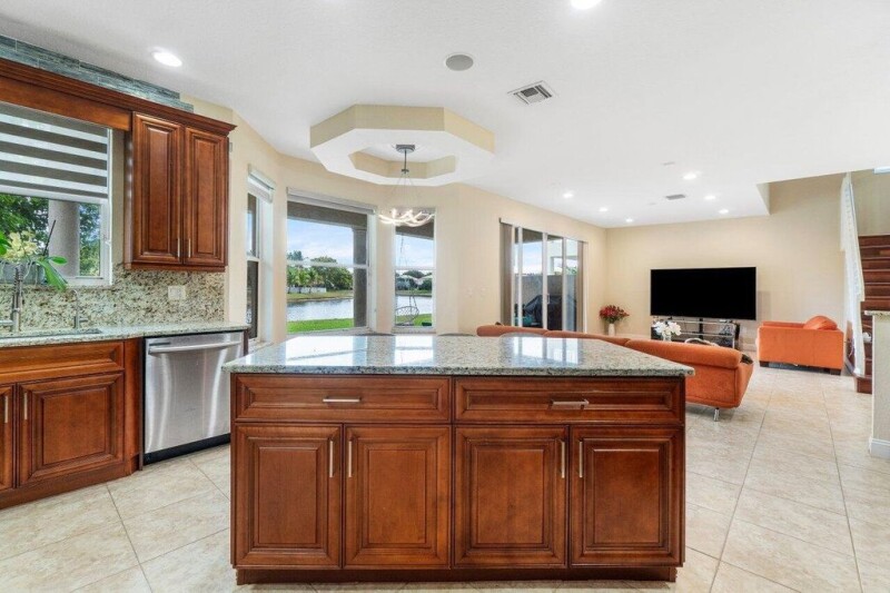 Welcome to a stunning 4 bedroom 2.5 bathroom home with scenic lakefront views located in the sought-after Olympia community of Wellington. This meticulously maintained home boasts an open floor plan, abundant natural light, and elegant finishes throughout. The gourmet kitchen is a chef's dream, featuring stainless steel appliances, granite countertops, ample cabinet space, and an extra large island. 4 bedrooms are located upstairs with wood flooring. The oversized primary bedroom is a true retreat, complete with an expansive balcony, two walk-in closets and a luxurious bathroom with bluetooth speakers & dual vanities. Additional bedrooms are generously sized, offering comfort and flexibility for family members or guests. Step outside to a private backyard with serene lake views, perfect.