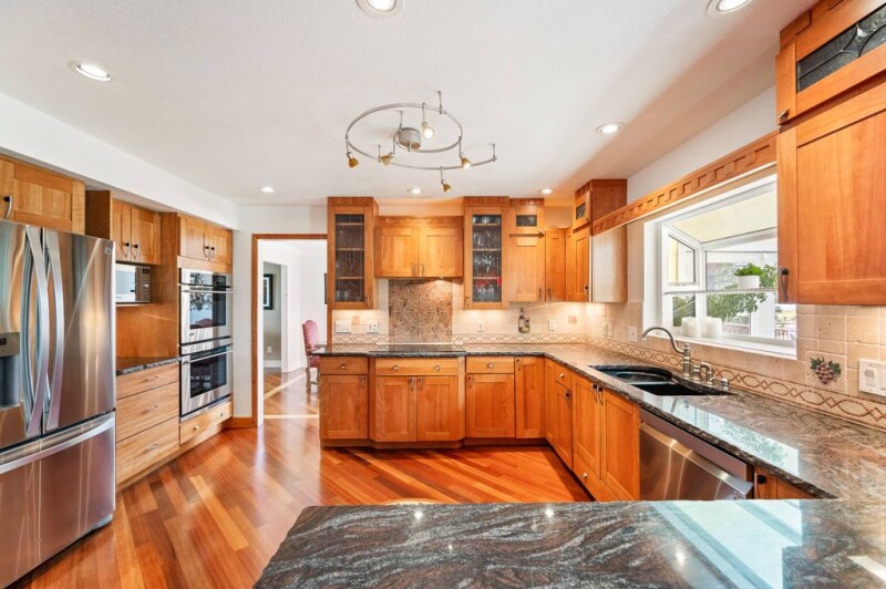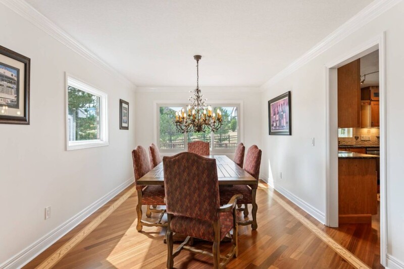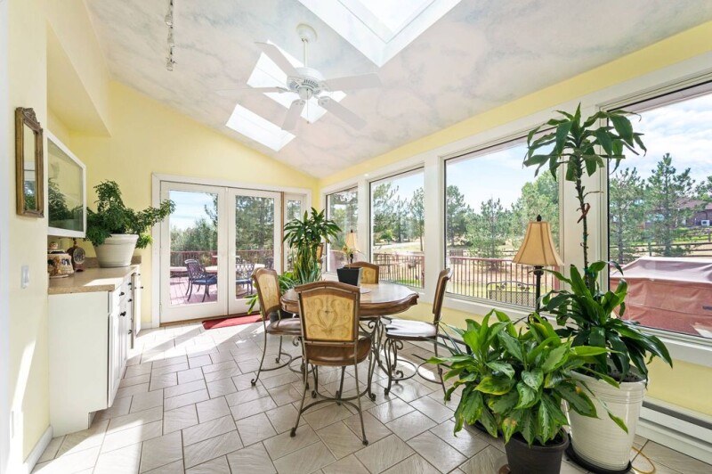 Welcome to this impeccably maintained single-family home in the highly sought-after Chapparal neighborhood! With nearly 5,000 square feet of finished living space, this stunning two-story home offers 5 bedrooms, 5 bathrooms, and a dedicated office. Situated on 1.28 acres, it boasts a garden-level basement and a wealth of luxurious features. The spacious kitchen opens to a heated sunroom, perfect for year-round enjoyment, overlooking the expansive 60-foot deck. Stunning Brazilian hardwood floors adorn the main level and staircase, infusing the home with warmth and sophistication. The welcoming family room features a marble fireplace framed by custom Alderwood cabinetry and mantle, complemented by a bar area and a spacious granite island, ideal for entertaining and family gatherings. The primary suite offers a large walk-in closet and a spacious five-piece bathroom, while three additional generously sized bedrooms provide ample space for family or guests. Outside, enjoy the expansive deck with a hot tub and covered patio area, perfect for outdoor entertaining. The fenced yard includes a garden area, and the 3-car attached garage provides extra storage for all your needs.