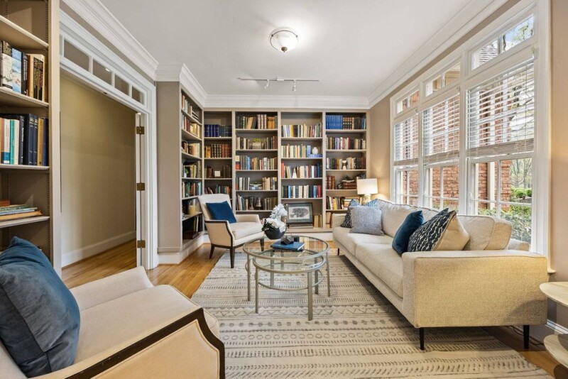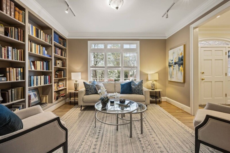 Great family home with good combination of formal and informal space allowing for multiple activities to take place at the same time. First floor is open and bright with large rooms and high ceilings. The large family room on the back of the home has a fireplace and a vaulted ceiling. The kitchen is large and opens up to the family room with a nice sized island and a breakfast area. The dining room is on the left side of the house and is large and bright. Also on the first floor is a library/office with ceiling height bookcases. The two car side entry garage has great storage, and a nice work room off of it. The master bedroom is on the second floor and has his and her closets. Three secondary bedrooms share two baths. The lower level is well finished off, and could be an in-law suite with a bedroom, full bath, a rec room, and a kitchen, and unfinished space which could be used for storage. The lot is the highest point of the subdivision, and captures a nice breeze most of the day. The front yard is relatively flat as is the backyard. A large multi level deck sits in the back with a nice grilling area. Attached to the back of the house is a room with a screened porch. This is a very special house in one of East Cobb's best School Districts--Sope Creek.