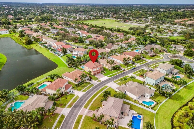 Wow, what a view! Welcome to 6145 Indian Forest Circle, a breathtaking 5-bedroom, 3-bathroom lakefront home located in the sought-after non-membership golf community of Winston Trails. This stunning property offers spectacular sunset views over the lake and is perfect for all ages. The backyard oasis features a sparkling pool, jacuzzi, outdoor dining space, and lush mango trees, making it ideal for entertaining or relaxing. The spacious layout includes one bedroom and a full bath conveniently located on the first floor, while the oversized primary suite upstairs boasts a versatile sitting area that can serve as a gym, office, nursery, or library. The open kitchen is designed for modern living, with granite countertops, wood cabinetry, stainless steel appliances, and a pantry for ample.