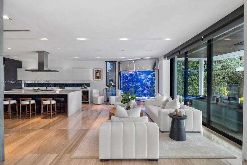 Step Inside With Me! This modern mansion is situated on a desirable cul-de-sac in Miami Beach's coveted Lakeview neighborhood. Soaring ceilings, a floating staircase, and waterfront lounges define the social areas. A contemporary chef's kitchen features an impressive aquarium. The primary suite is complete with grand dressing room, sleek bath, and expansive terrace with hot tub + tranquil views to the water. An enviable pool setting beholds a Summer kitchen, hosting bar, covered dining, firepit, and private dock along 85' of water frontage. The amenity suite continues with a top of the line home cinema, fitness area, and spectacular rooftop with pergola and dramatic views. Beautiful garden entry, koi pond, automated gate, spacious car port, and extensive driveway complete this offering.