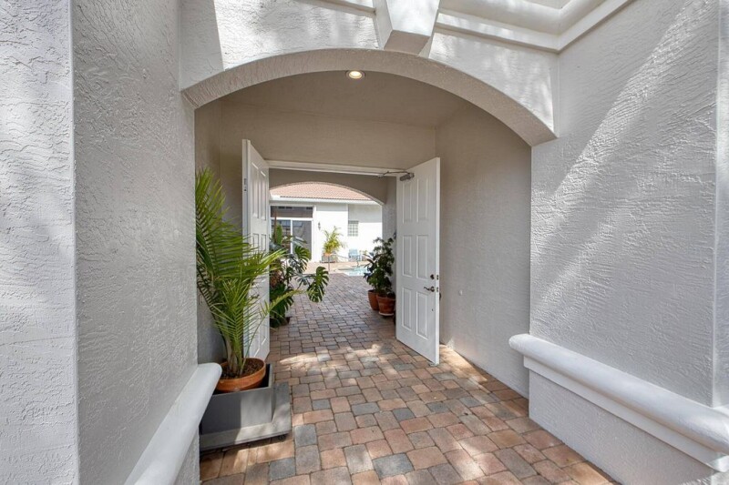This courtyard home in a premier gated community offers spacious living areas with high ceilings and abundant natural light. Enjoy the serene, private setting with lake views. Home has a poolside suite that can be used for guest bedroom or home office. The gourmet kitchen features modern appliances and ample counter space. Rest easy as the home has new roof, new impact windows (upstairs), new accordion shutters (downstairs), a newly resurfaced pool, and exterior of home has been freshly painted. In addition to the onsite Clubhouse amenities, the property is conveniently located near shopping, dining, and recreational activities, offering a superb blend of comfort and convenience. Don't miss the opportunity to make this your new home.