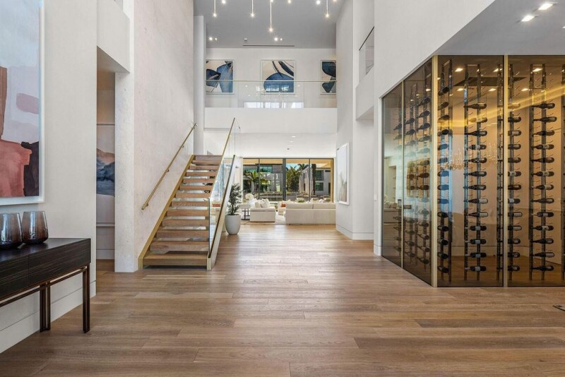 Experience the pinnacle of waterfront luxury in Royal Palm Yacht & Country Club. This extraordinary estate is masterfully crafted by the acclaimed Sarkela Corporation and Ada Architecture Design Atelier. Encompassing over 9,500 square feet of living space, this architectural masterpiece offers six bedrooms, seven full bathrooms, and two half bathrooms, all impeccably designed for unparalleled sophistication and comfort. Every detail of this home reflects the highest level of craftsmanship and quality. The interiors showcase hand-finished DuChateau premium oak hardwood floors, sleek Italian cabinetry, and elegant European marble in the kitchen and baths. Dornbracht bath fixtures and Terzani lighting installations elevate the ambiance, creating an atmosphere of refined elegance.