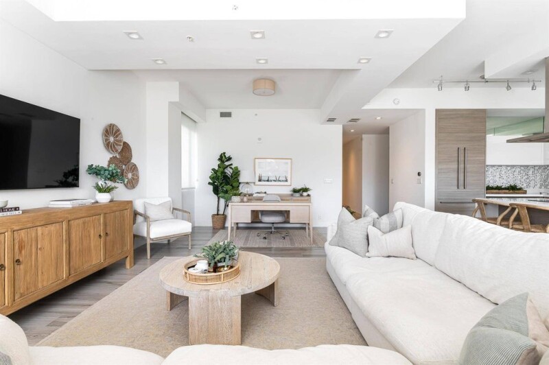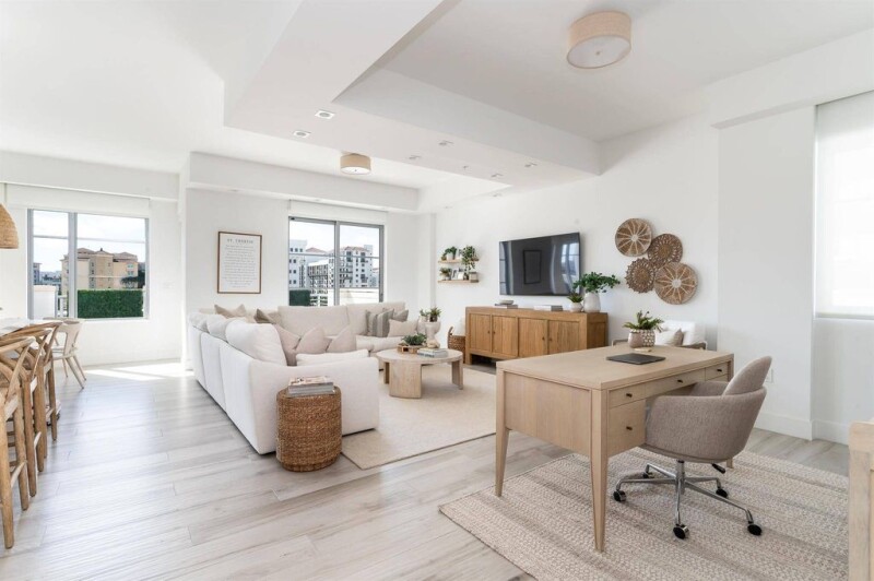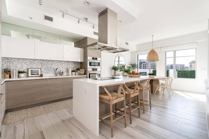 Most desirable 2-Bedroom unit in Tower 155 with stunning outdoor spaces! Conveniently located just off the elevator, this beautifully appointed residence has just under 1,700 SqFt of living space and an unbelievable large balcony with large seating area with direct southern exposure. Upgrades throughout. Italian porcelain tile floors, 10-foot ceilings, Chef's kitchen with handmade Italian cabinetry, Quartz counters, and top-of-the-line Bosch appliances include a double wall oven, and center island with wine fridge and custom waterfall feature. Spacious master suite with walk-in closet, built out closets, its own private balcony, and luxurious bathroom featuring a dual sink floating vanity and high-end fixtures. In-unit laundry room has front-loading washer and dryer.