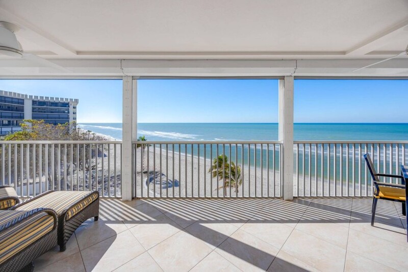 One of the best views in all of Naples! Enjoy direct, unobstructed gulf views from nearly every room in this sought-after 02 stack residence at Regency Towers. The floor plan has been thoughtfully opened and reconfigured to feature a spacious great room, a stunning open kitchen with a large island, a dining area and an expansive covered balcony with impact-glass sliders, plus retractable screens and shutters for added convenience. Spacious primary bedroom with en suite and walk-in closet, guest bedroom with en suite, both with gulf views and a separate den area with built-in desk unique to this particular unit. New air conditioning and electric panel. The unit has its laundry with additional facilities available in the building. One under-building garage space and a storage locker are included. Regency Towers is an intimate enclave of only 40 units split between two buildings. In the west building which is closest to the gulf. Amenities include beach access, an updated lobby, on-site manager, a newly renovated beachside oasis with patio, new large, heated pool with spa and lounge areas, updated community social room, barbecue grill area and an updated fitness room. Conveniently near Venetian Village with excellent shopping and dining options.