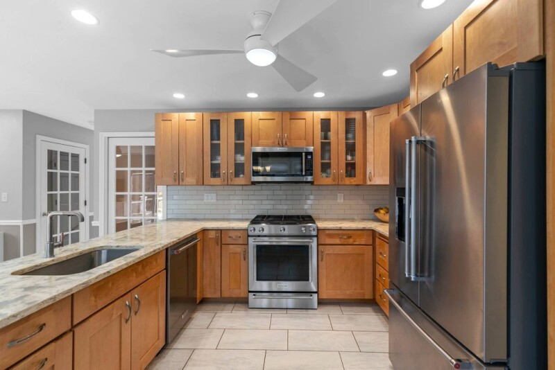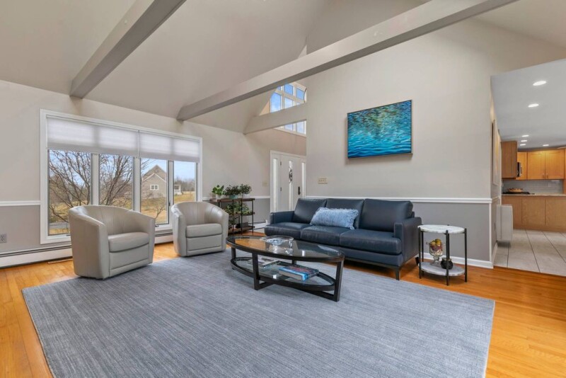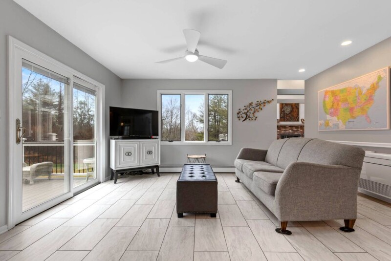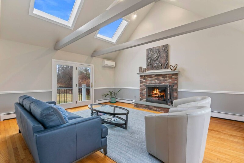 WOW! This stunning contemporary colonial is bathed in sunlight and packed with incredible features from top to bottom. Step into the dramatic new two-story entry and be amazed. The huge family room boasts beamed cathedral ceilings, skylights, a cozy fireplace, and an abundance of windows. Gleaming hardwood floors flow throughout, leading to a banquet-sized dining room perfect for hosting. The stunning, updated eat-in maple kitchen features quartz countertops, newer stainless steel appliances, and ample cabinet and counter space. It opens to a fantastic den with sliders to a massive new deck and stone patio. Upstairs, you'll find four oversized bedrooms and two breathtaking new baths. The primary suite is a dream, offering two gigantic walk-in closets and a spa-like brand-new bathroom with heated floors, a floating tub, walk-in shower, and double sinks. The newly finished walkout lower level adds 325 sq. ft. of extra living space. Plus an expansive storage room with professional waterproofing. A fabulous flat yard with lush perennial gardens. NEW Hardie board siding, walkway, patio, tile, irrigation system, central air, custom window shades, interior completely painted, remodeled 1/2 bath and so much more complete this must-see home! Just minutes to downtown Guilford, the train, highway, shopping & Jacobs beach. Incredible neighborhood! DO NOT MISS THIS EXQUISITE HOME.