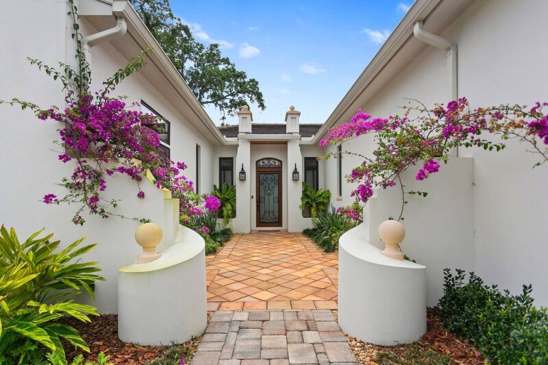 Avila - Live in extraordinary VillaLagos de Avila. Understated and sophisticated describe this finely crafted modern home. In a guard-gated community and built in 2018, this golf and lakefront enclave of 10 meticulously crafted homes was designed for individuals seeking the finest level of craftsmanship in an intimate and natural setting. Overlooking two stunning lakes, a par-71 Jack Nicklaus-designed golf course and surrounded by the serenity of cypress and grand oaks, this home is the essence of tranquility. High 12-foot ceilings throughout and smooth-finish walls create the perfect subtle canvas for a perfectly appointed home. Custom iron entry door, natural beam ceilings and recessed alcoves surround a linear fireplace and provide the ideal warmth to a modern design. A private courtyard entry with grand foyer welcomes guests and an artful, well-appointed chef's kitchen provides a delightful place to entertain. With an open floor plan, abundant lighting and water views throughout, indoor and outdoor living spaces extend and unite, opening living spaces to the lanai and summer kitchen, all set upon your private lakefront. The primary suite is large with 12-foot ceilings, abundant views and vast storage and closets. The primary bath presents specialty stone finishes and Hansgrohe fixtures. A large clubroom/office makes for the perfect professional work-from-home setup with separate entry access from the private front courtyard. A dedicated guest suite offers privacy to guests. Garage is 3 car and oversized, allowing room for your golf cart as well. Landscaping is right-sized and sustainable. This is an exceptional FGBC green-certified home. Too many details to list. Optional club amenities include an 18-hole golf course, Har-Tru tennis courts, fitness center, lap pool, clubhouse and dining. Easy access to downtown Tampa, Tampa International Airport, shopping, dining, sports venues, parks and No. 1-rated Clearwater Beach. Come and enjoy everything Florida and Avila have to offer. Large 21-by-16 room shown in photos as office with private entrance is currently listed as a fourth bedroom.
