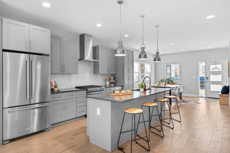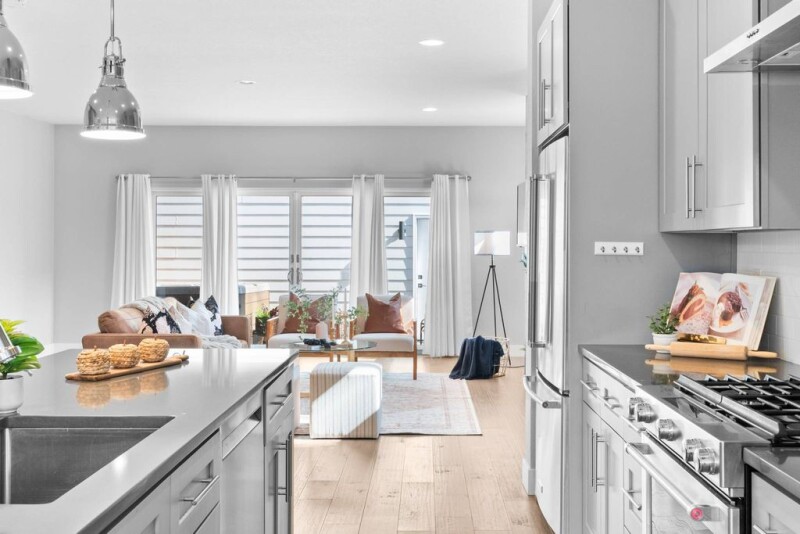 Experience modern luxury in the heart of SoBo! This stunning attached home offers 4 bedrooms, 4 bathrooms, and over 2300 square feet of beautifully designed living space across three levels. Ideally located within walking distance to trendy restaurants, lively bars, Swedish and Craig Hospitals, and the Light Rail, this home combines urban convenience with sophisticated style. Step inside to an open, light-filled, floor plan featuring 9-foot ceilings, quartz countertops, Italian tile, wide-plan engineered hardwood floors, and a sleek wide-format gas fireplace. The custom kitchen is a chef’s dream, boasting high-end KitchenAid appliances, a 5-burner gas stove, an oversized island, and a walk-in pantry—all, perfect for entertaining. Upstairs, you’ll find three generously sized bedrooms, including a luxurious primary suite with a spacious walk-in closet, an expansive shower, and a private covered deck. A convenient fully furnished laundry room completes this level. The rooftop deck is the true highlight, offering breathtaking mountain views, a loft area, a wet bar, a half bath, and an additional room—ideal as a fourth bedroom or home office. Additional features include two furnaces, two A/C units, full-length sliding doors leading to a private patio and backyard with a hot tub, and a spacious 2-car garage. Plus, the 929-square-foot unfinished basement provides endless possibilities for customization. The home also is the Southern unit giving it maximum exposure to sunlight. Welcome home! Don’t miss this rare opportunity to own a modern masterpiece in one of Denver’s most sought-after neighborhoods! Property will be live 2/20 and was withdrawn for the week due to weather.