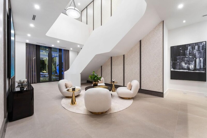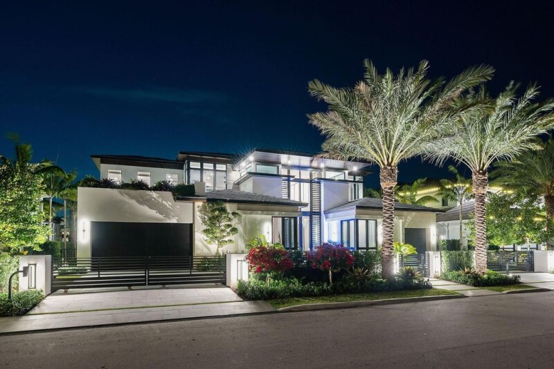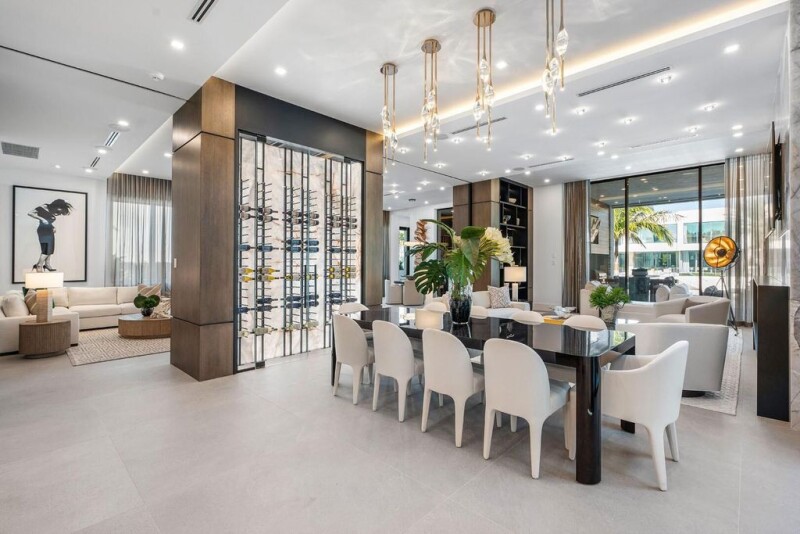 Nestled along 101 feet of the prestigious Butterfly Palm Waterway, this newly completed ultra-luxury contemporary estate developed by Matthew Epstein of Primark Partners sets a new standard that epitomizes waterfront elegance. Architecture by Affiniti Architects with interiors by Michael Gray Interiors, this seven-bedroom residence seamlessly blends innovative design with the finest materials and meticulous craftsmanship, offering a refined lifestyle in one of Boca Raton's most exclusive enclaves.The first-floor primary suite is a serene retreat with indulgent His & Her spa-inspired bathrooms wrapped in Italian travertine and boutique-style closets. The thoughtfully designed interior also includes a chic clubroom with a Quartzite bar, a sophisticated home office, a formal dining.