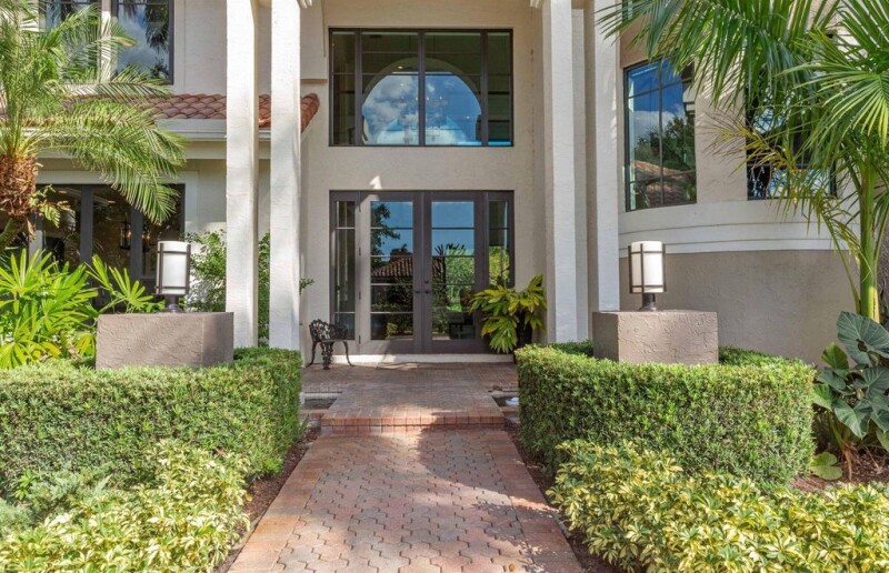 This remarkable estate, located at 10438 Prestwick Road in Boynton Beach, is a true masterpiece in the prestigious Pine Tree Golf Club, a gated and guarded community known for its exclusivity, privacy, and unparalleled charm. Situated on a sprawling .85-acre lot in the estate section, the property offers over 233 feet of frontage along the 10th fairway, making it one of the largest and most coveted homesites in the neighborhood. Combining timeless elegance with modern sophistication, this home has been meticulously renovated to exceed every expectation. From the moment you arrive, the grandeur of this 7,224-square-foot residence is evident. The home features five expansive bedrooms and five exquisitely updated bathrooms, each designed with the utmost attention to detail. The entrance.