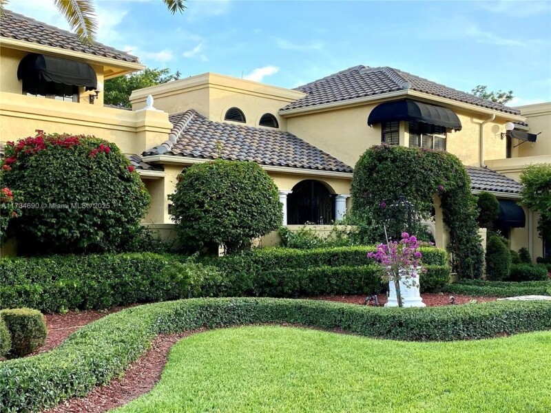 Breathtaking Mediterranean Style Mansion in Whispering Woods, 1 acre Cul De Sac Homesite. 7479 sqf living area. Magnificent gardens, stile resort pool with heater, gazebo and catio. Professionally decorated 2 stories, 7 bedrooms with walking closets and designed cabinets, 7 complete bath and 1 half bath, living room, dinning room, 2 family room, fire place, 2 offices spaces, laundry area, and extra space room used as playroom but can be used as Gym or cinema room, exceptional kitchen with huge eat in area, granite counters, SS Viking appliances ,Stove, double ovens, large center cooking island. Also Wiener room, Huge Garage with cabinets and space for 3 vehicles plus parking area. Marbel, wood fand laminated floors. The roof is just 10 years old, impact windows, new A/C, water heather.