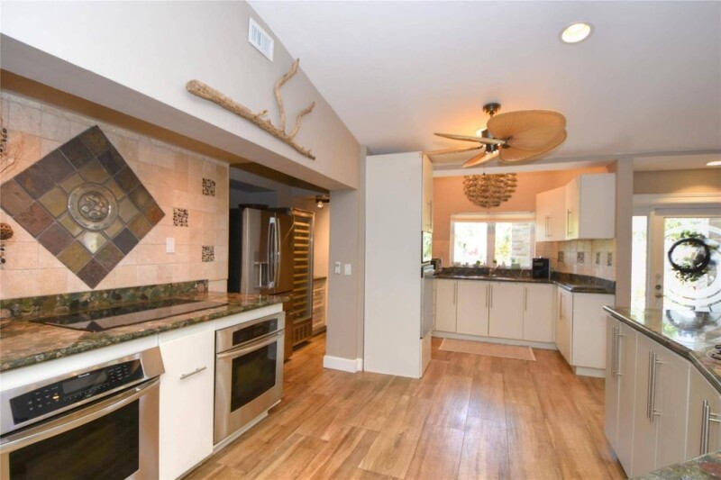 Italian Porcelain Flooring In Main Area, Brazilian & Bamboo flooring in Bedrooms, Secluded private Tropical Florida Sanctuary with sunset & water views, Updated-Covered Outdoor seating, 35 ft. Heated saltwater pool. 2 central air systems, Impact windows Open kitchen & Living room concept, split bedroom plan, electric fireplace. Immaculate condition. Up to 35' boat, 5 min to Hillsboro Inlet- 10 min, Boca Inlet. Tiki Hut, Structural Roofing System for exterior Outdoor Patio.