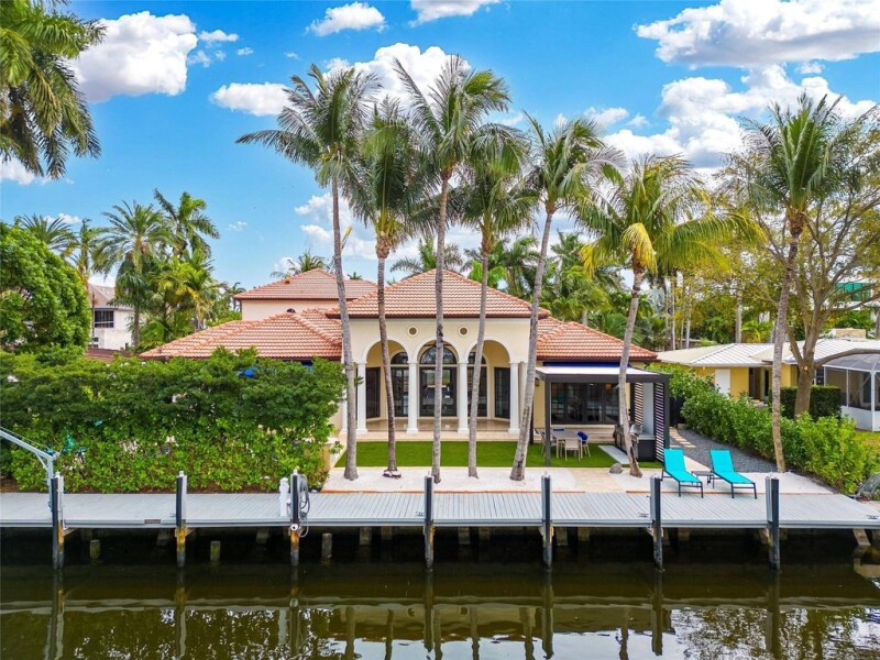 Waterfront Gated Estate in heart of the Las Olas Isles. Elegant Mediterranean-Contemporary that features exceptional Great Room with volume ceilings, architectural detail with light filled warm ambiance and, great layout with 3+1 beds on first floor and 3 beds on 2nd. Marble and wood floors, granite countertops, chef's kitchen with Sub-Zero Fridge and Wolf gas range open to family room. Primary Suite on 1st floor with expansive walk in closet and bath, separate entrance for Guest/In-Law Suite or Maids Quarters, propane tank, Gas Generator. One bed used as Office/Guest Suites' sitting area. Stunning heated salt water pool, 2 Car Garage, 80 Ft dock. Vacation Rental Ready. New Summer Kitchen is perfect for entertaining!.