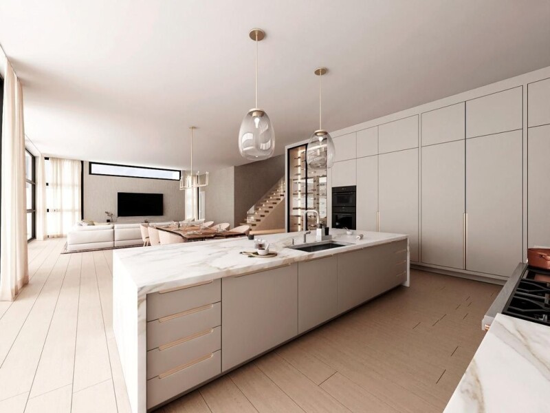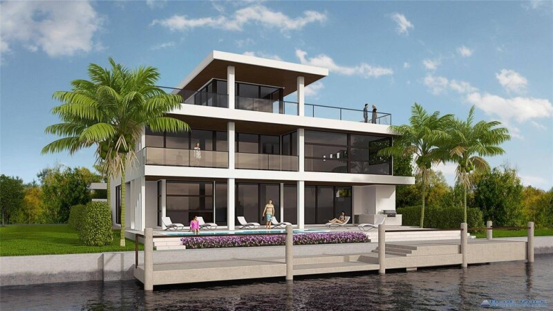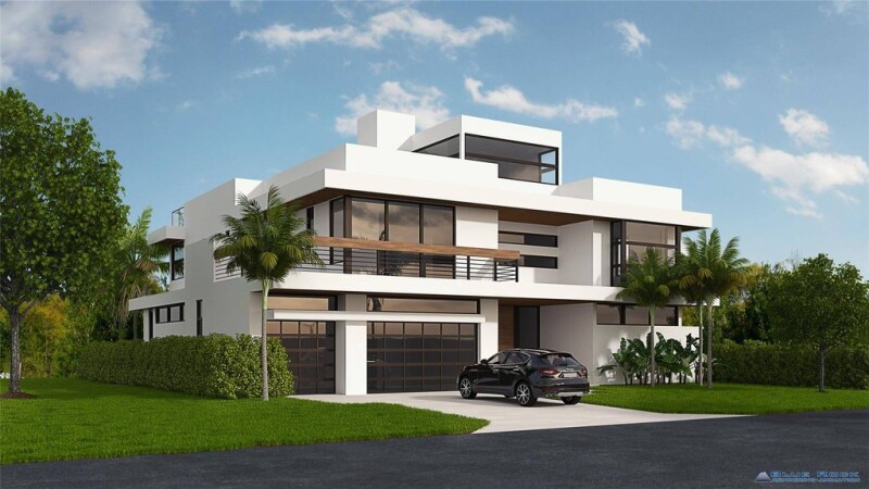 This modern new construction home by architect Robert Tuthill & Stenmark Builders is set for completion May 2025. Spanning 8,433 total sq. ft. with 5,424 sq. ft. under air, it features a 3-car garage with space for lifts, accommodating up to 6 vehicles. The 3-story entrance leads to 5 bedrooms, 8 bathrooms, an elevator & an under-lit glass staircase that serves as a stunning architectural centerpiece. Caicos wood floors enhance the first two levels, while premium tile elevates the third. A new seawall, 80ft of water frontage, no fixed bridges & quick ocean access. The private outdoor oasis boasts a pool, cold plunge & hot tub, perfect for relaxation. Built for beauty & resilience this home ensures lasting waterfront security. Buyer to verify all measurements.