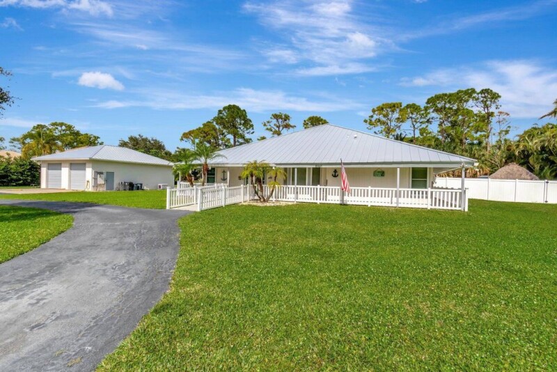 WELCOME TO PARADISE ! SELLER IS OFFERING A $10,000 CREDIT TO THE BUYER TOWARDS CLOSING COSTS AT CLOSING !!! The coveted neighborhood of Palm Beach Ranchettes known for its non-HOA community and location. This impeccably maintained home is move-in ready and is nestled on a manicured 1.03-acre lot that is completely fenced with 2 electronic entry gates. The property also features a detached 1200 sq. ft., 7 car garage/workshop. This home boasts a new metal roof in 2024, complete impact windows and doors and has been totally upgraded in the past year with too many upgrades to mention. Please see attached a feature sheet in documents for a complete list of upgrades. It also has a loft which is easily converted into a 4th bedroom or home office.