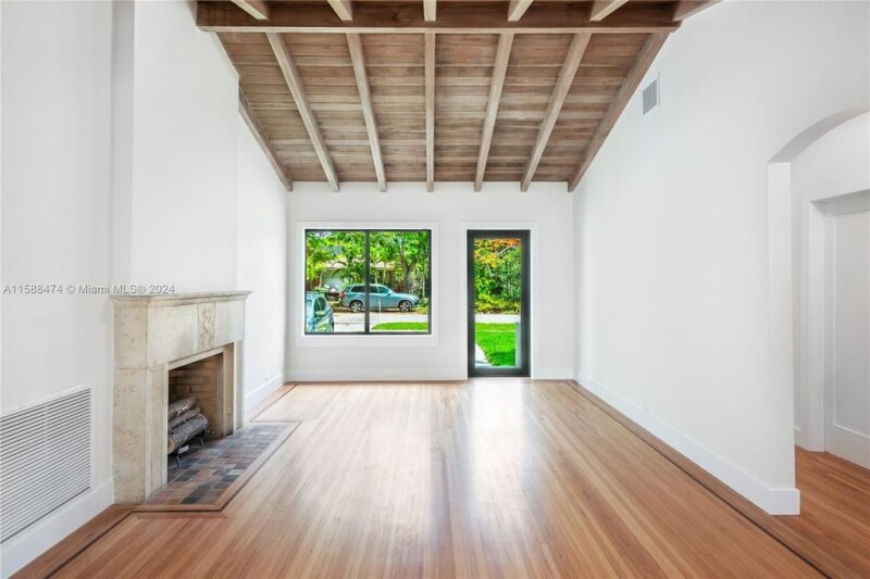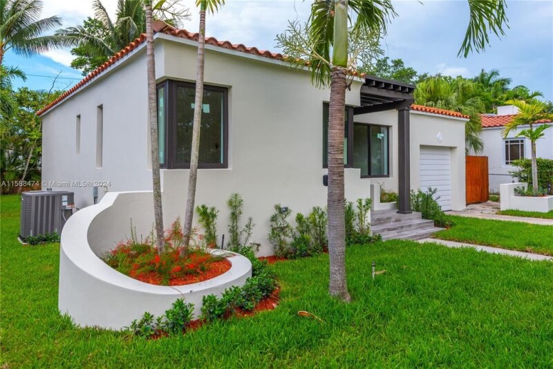 Meticulously renovated 1941 home in Belle Meade with 3 bd/2 ba + 1 car garage. This home maintains the original Art Deco charm with modern conveniences featuring large living area w/wood beam ceilings & original mantle, open kitchen w/ quartz counters, white cabinets & ss appliances.Tropical Modern bathrooms w/double sinks & high end fixtures. Dining area overlooking large deck & nicely landscaped fenced yard. No attention to detail spared w/custom blinds, lighting, interior doors, hardware & wired for high speed internet. Impact windows, new electric & alarm. Original features include wood floors with distinct dark borders, arches & niches throughout. Gated bayfront community in the trendy Upper Eastside. Renovations completed 2019. Actual SF 1,787 sf including garage.Leased thru 7/31/25.