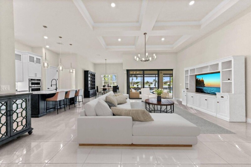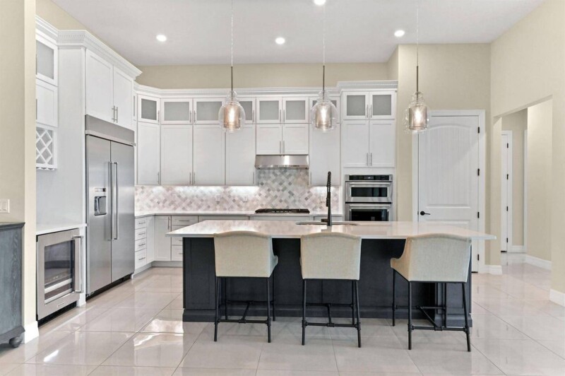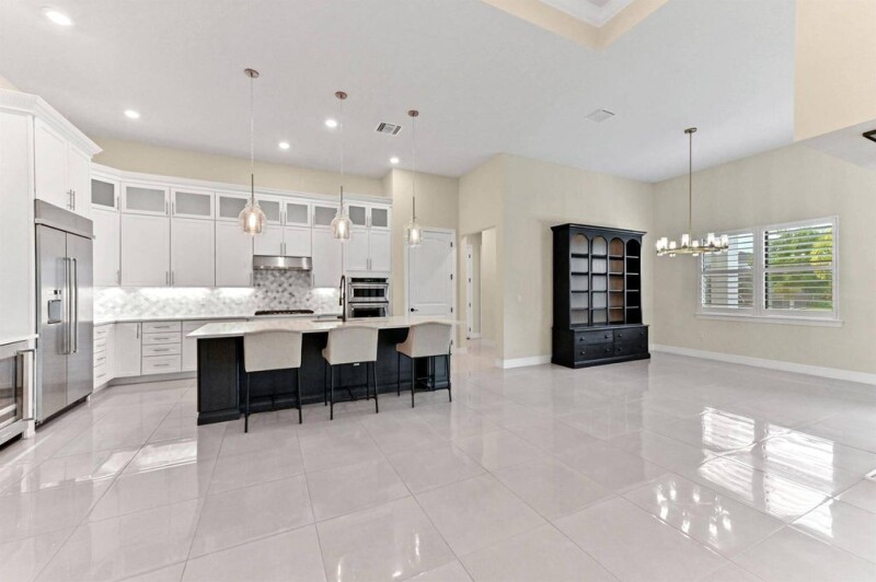 Experience unparalleled elegance in this stunning 2021-built waterfront home, perfectly situated on an oversized lot in the prestigious Ancient Tree community. This 4-bedroom, 3-bathroom residence, complete with a dedicated office, is true luxury Florida living. Designed for both grand entertaining and everyday comfort, the open-concept layout showcases a chef's kitchen featuring top-of-the-line stainless steel appliances, a gas range, custom island, upgraded cabinetry, and a stylish wine bar.