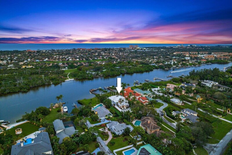 BOATER'S DREAM - BRING ALL OFFERS!A rare opportunity to own a premier waterfront estate in Jupiter, Florida, designed for those who love life on the water. This Intracoastal masterpiece boasts 90 feet of direct waterfront, a 120-foot deep-water dock, and no fixed bridges, providing effortless access to both the Jupiter and Palm Beach Inlets.Set on nearly an acre at the end of a quiet cul-de-sac, this custom-built estate was remodeled in 2018 and offers the perfect blend of luxury, privacy, and functionality. With five bedrooms, eight and a half bathrooms, and 10,803 total square feet, this home is an entertainer's dream, designed for seamless indoor-outdoor living.