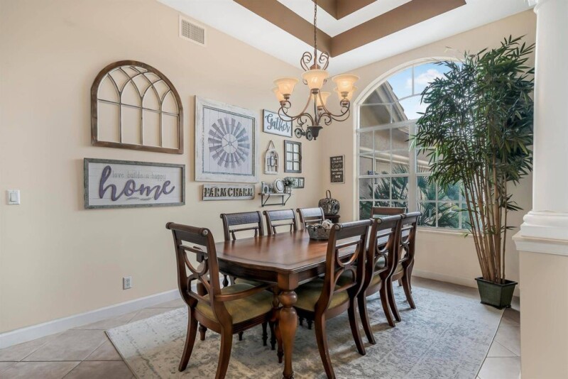 A MUST SEE!--stunning 4/3 home in Oakbrooke Estates, tucked in a peaceful cul-de-sac. This spacious triple split floorplan boasts 13' vaulted ceilings, coffered details, and arched walls that define the open layout. A living, family, and dining room, plus a bonus room, offer versatility. The entertainer's kitchen features granite counters, a full pantry, and a bay-window breakfast nook. Hurricane-grade sliders lead to an expansive screened patio, filling the home with natural light. Step outside to a private oasis with a resurfaced saltwater pool and new equipment. Access the cabana bathroom and 4th bedroom, ideal for guest privacy. The 3-car garage offers storage for vehicles and toys. Families love the community's footpath to PC Elementary. This home suits families and retiree's alike!.