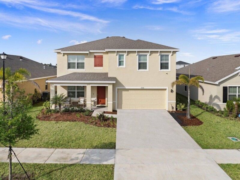 Now is your chance to own a beautiful 2022 built home in the desirable Community of Crosstown Commons. Known for its's social gatherings, parades, views and amazing amenities, it's hard to believe the HOA fee is under $500 a YEAR! This two-story CBS 5 bedroom 4 bathroom home features an open concept kitchen, large primary bedroom with two walk-in closets, loft area, first floor guest room, game/flex room, lake view and SO MUCH MORE! Enjoy easy Florida living at the Community Clubhouse and Pool without the expense of maintaining your own! Close to Shopping, Golf Courses and I-95, this is the perfect home AND community for all ages! Don't miss out, schedule your private tour today! 10 year transferable builders warranty included.