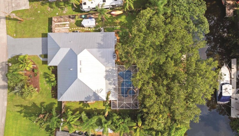 Enjoy serene water views from the screened patio, heated pool and hot tub ideal for relaxing evenings or outdoor dining. Updates abound with a 2008 dock and new decking, small boat lift, complete with wrapped pilings. Additional highlights include a fish cleaning station, low-voltage backyard lighting, and storm shutters for added protection. The landscaped yard includes new features and a fire pit, perfect for outdoor gatherings and relaxation. The property features full shutters, impact-rated door and garage door, ensuring durability and safety. City water and sewer services are confirmed, with a well available though not currently in use. Recent upgrades include a 2021 metal roof, 2016 AC unit, and a 2017 water heater, ensuring efficiency and comfort for years to come. Waterfront.