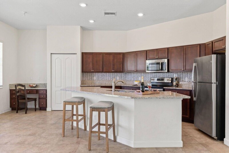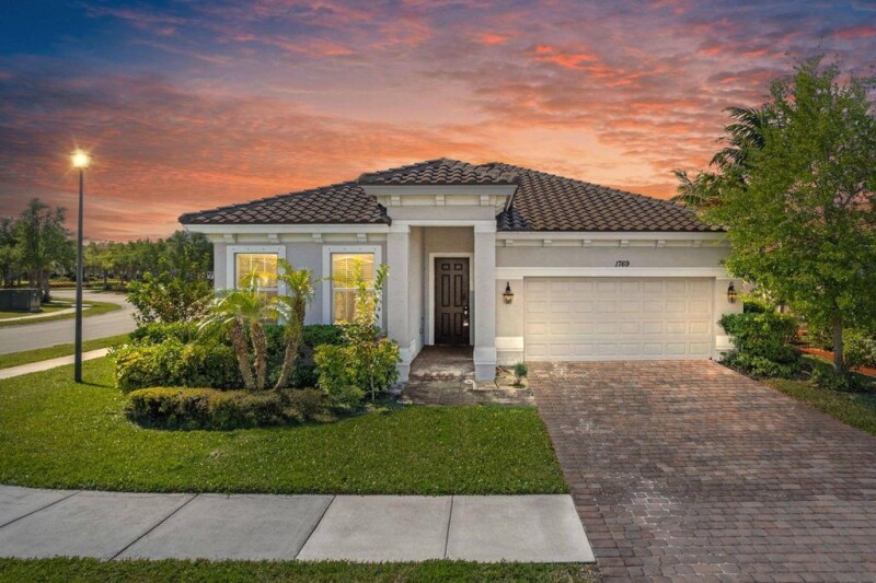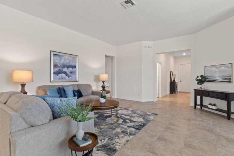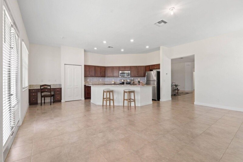Resort-Style Living at Your Doorstep! Perfectly positioned just steps from the community clubhouse and pool, this spacious 4-bedroom, 3-bath home offers the ideal blend of convenience, comfort, and style. With one of the largest single-story floor plans in the neighborhood, this 2019 Lennar-built residence is adorned with high-end finishes and framed by tranquil lake views that elevate everyday living. The thoughtfully designed layout includes a private en-suite guest room, ideal for extended stays or multigenerational living. A formal family room seamlessly connects to the dining area, while the expansive granite island kitchen invites casual conversation with bar seating and open views into the main living space. Enjoy resort-style amenities without leaving the neighborhood--.