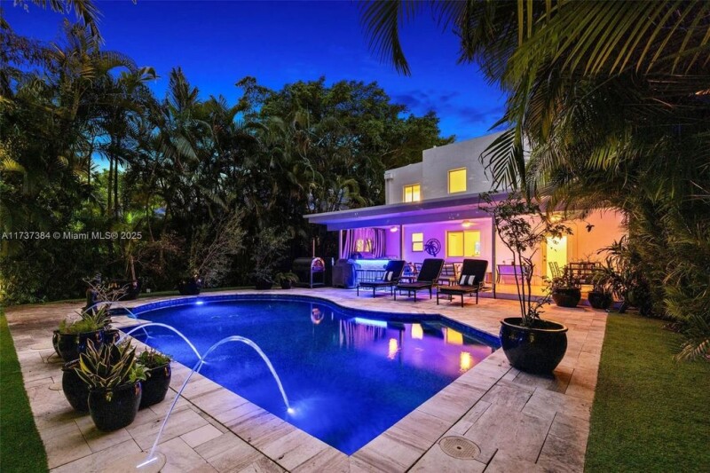 Step into this beautifully designed 4-bed, 3.5-bath home, where every detail blends style and functionality. The full-floor master suite offers an office nook, spa-like bath with dual vanities, and two walk-in closets. Downstairs, three versatile bedrooms include a secondary master suite and a custom den with a Murphy bed. The open kitchen boasts Wolf appliances, custom cabinetry, and a Cove dishwasher. Smart upgrades include hurricane-proof windows, a 3-zone HVAC, NEST thermostats, ADT security, and automatic blinds. Outside, enjoy a heated pool with ambient lighting, an outdoor kitchen, pizza oven, and lush landscaping. Just minutes from the beach and the soon-to-open Bayshore Park, this home is a must-see!.