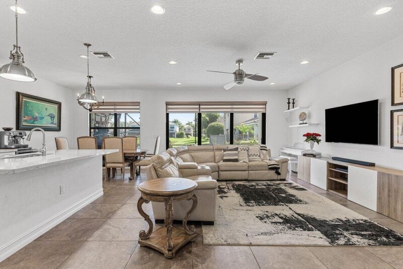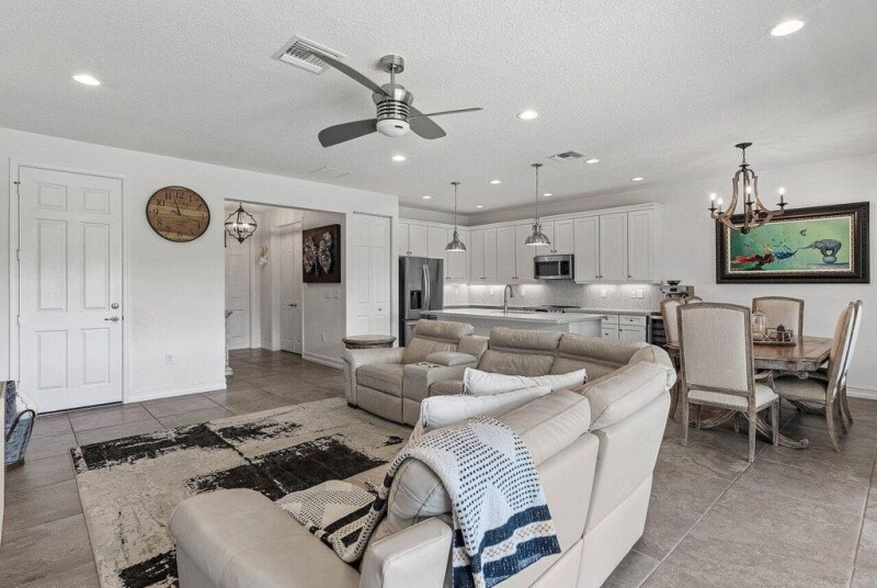 FULLY FURNISHED and MOVE IN READY! This Stunning 2016 Capri model home in Tuscany North is the largest model built by GL Homes. This beautifully designed residence features five spacious bedrooms, an office, a loft, and four full bathrooms. The first floor offers an open concept layout, seamlessly connecting the kitchen, dining room, and family room, making it perfect for entertaining. The gorgeous kitchen boasts all-white cabinets, quartz countertops, and a matching stylish quartz backsplash, complemented by new stainless steel appliances. The first floor also includes an office and one guest bedroom with a full bathroom for added convenience.The designer garage is equipped with custom storage cabinets and epoxy flooring, providing both functionality and style. Additionally,.