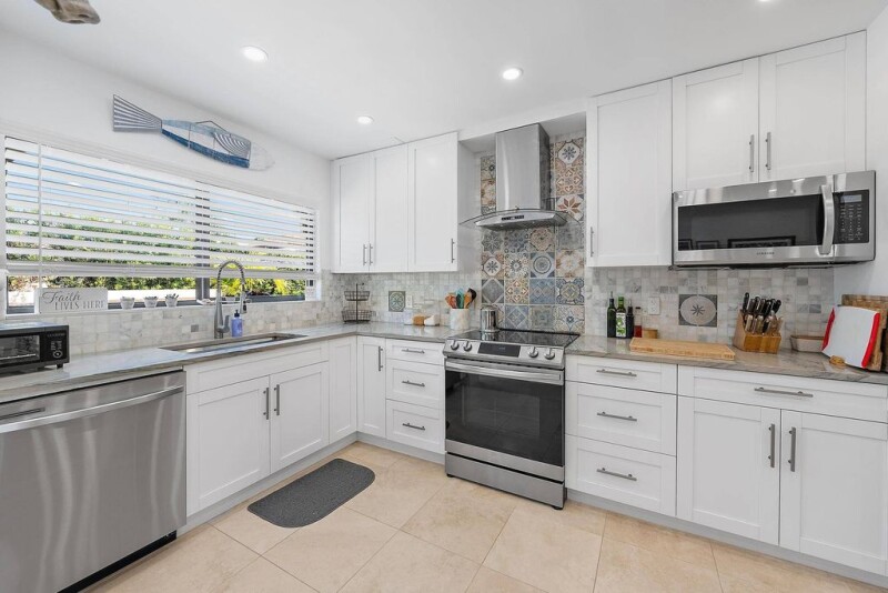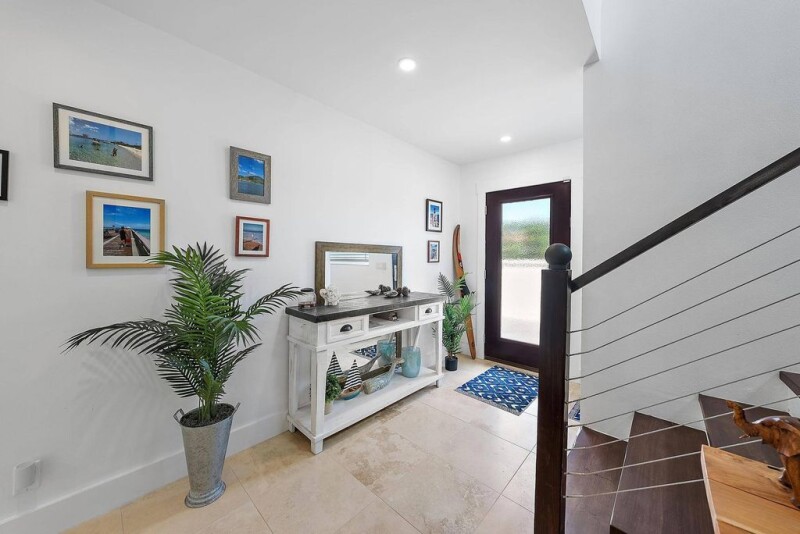 Just a block from the beach. Beautifully upgraded home featuring a 2022 roof, AC, and mini-split system. Enjoy the convenience of a power awning, plantation shutters, and power blinds. Recent upgrades include interior doors, hardware, front door, kitchen add-on with sidebar fridge, new gutters, and downspouts. The garage boasts a finished floor and attic stairs, while the exterior shines with fresh paint, new lighting, and landscape lights. Perfect for entertaining, the outdoor space includes a grill and fridge. Full impact glass, hurricane-rated roof, and wind mitigation report available. Plus, enjoy a beautiful outdoor shower. AC Airduct was all replaced 2024. Low HOA!.