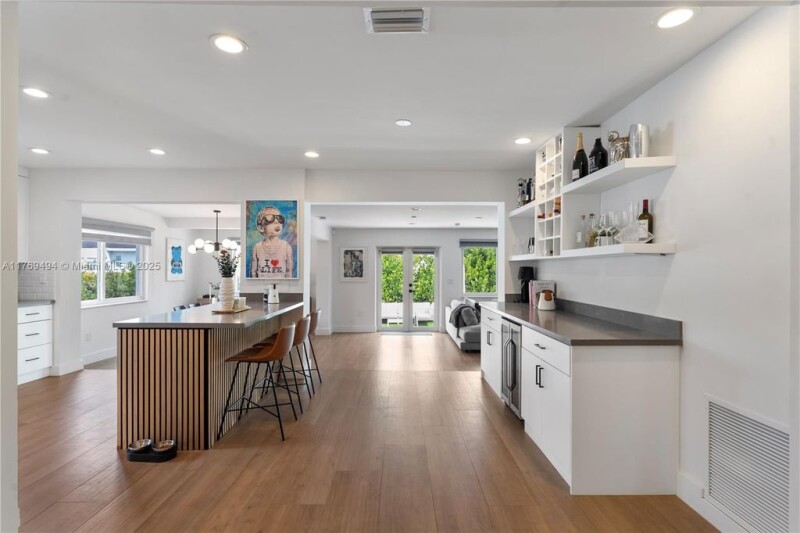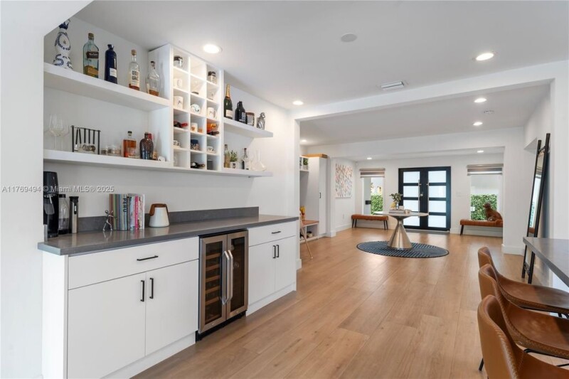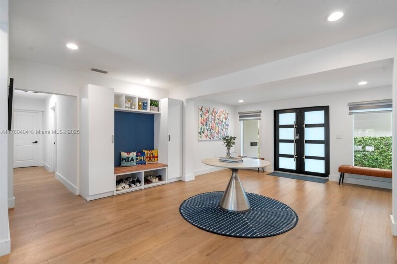 Fully renovated, 4 beds + office, 4 full baths home on a serene tree-lined street in Coral Gate. Inside features contemporary finishes and a completely open layout seamlessly connecting a statement making foyer with mudroom to the kitchen + custom built-in bar and expansive dining and living area. A spacious primary features his + hers walk-in closets and a modern bath with dual vanities, dual showerheads and an enclosed water closet. Relax & entertain in the backyard oasis complete with covered summer kitchen, heated pool & spa, and pet friendly turf area. Beautiful landscaping maximizes privacy while creating a quiet tropical retreat. Zoned for Coral Gables’ A-rated school district and located just steps from Miracle Mile, this one-of-a-kind home is a family friendly haven.