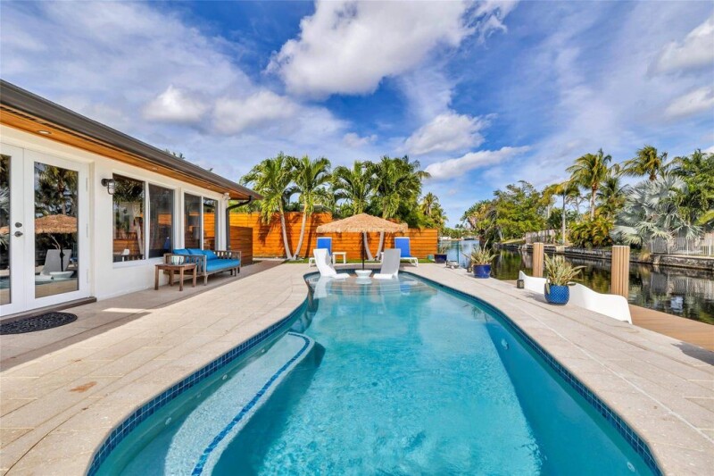 Waterfront Home – Step into this stunningly renovated 3-bed, 2-bath 2 car garage home with a split bedroom plan and open kitchen/family room. Inside, the light-filled spaces and luxurious details create an inviting atmosphere, while modern updates provide peace of mind and convenience. Designed for entertaining, the backyard features a heated and chilled saltwater pool, expansive deck, and a tiki bar on a canal with a new dock and seawall. This home offers peace of mind with a newer roof, impact windows and doors, and a full-house natural gas generator. Minutes from Fort Lauderdale beaches, Wilton Manors nightlife, and top restaurants, this property is the perfect blend of style and location. See it today and fall in love with your dream home!.