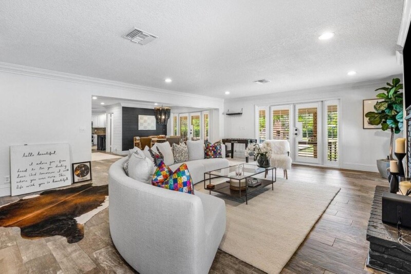 Impact Windows/Doors! 4 Car Garage! You know this home is special as soon as you step into it. A perfect balance of 'modern & timeless', 'light & dark', 'relaxed & sophisticated'. A curved staircase takes centerstage in the 2 story foyer with white wash brick walls. The family room has a fireplace, contrasting dark & light shiplap accent walls & is expansive. The sunny kitchen offers white cabinets & a contrasting black island, top shelf appliances & granite counters. Spacious primary suite with a Juliet balcony, & a spa bathroom with a separate claw foot tub & shower. The private & sprawling backyard offers an oversize pool, Basketball Court, fireplace, pizza oven & serene outdoor living spaces. Other offerings: Sunroom, Gaming room/Office, New septic system, New electric panel & etc.