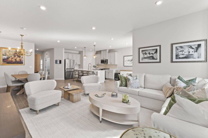 This immaculate home is a masterpiece of design and upgrades. Porcelain wood grain floors throughout, custom marble backsplash and quartz countertops in kitchen and baths. The open-concept plan features a large island, gas stove and custom walk-in pantry. The split floor plan offers a private master suite with a custom closet and spa-like bath. With 3 bedrooms, 3 baths and a bonus room there's space for everyone. Outdoors, relax on the travertine patio under a pergola, overlooking a peaceful preserve. ADT security system, whole house water filtration and a paver driveway complete the home.