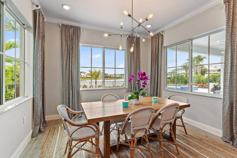 Enjoy stunning wide lake views from the back yard of this professionally decorated home built by K. Hovnanian Homes in 2023.Avenir is conveniently located near Sand Hill Crane Golf Club, an 18-hole championship course, PBIA, shopping and fine dining.Community amenities include resort-style pools, spa, pickleball, tennis, two fitness rooms, indoor/outdoor lounge, outdoor game area, playground, community club house, and much more.