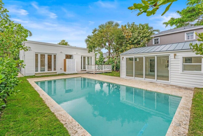 Historic Palm Beach charm reimagined in Flamingo Park. This Key West Colonial was originally built in 1949 and has been completely restored with an extensive concrete block addition boasting 4 bedrooms and 3.5 baths total. The main house features three bedrooms and 2.5 baths and the guest house includes an additional full bath and kitchenette. The home has been redesigned with an open floor plan, raised new metal roof, and beautiful 10 foot ceilings. The wood frame portion of the home was replaced with pressure treated wood, as well as new PVC plumbing, new electrical, HVAC, and new impact doors and windows throughout. The primary suite opens to the pool with ample closet space and a one-of-a-kind indoor/outdoor shower. Bespoke outdoor landscaping and hardscape, a heated SEE MORE:.