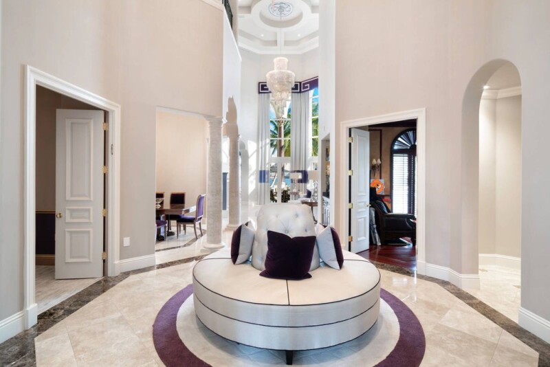 Experience unrivaled luxury located on the open bay in the prestigious gated community of Island Estates. The only home on a double lot of 24,772sf with 240ft of water frontage. Top-of-the-line finishes, vaulted 30-foot ceilings, gourmet chef's kitchen, elevator, luxurious master suite with sitting area and veranda with sunrises and sunset panoramic views. Stunning tropical pool and spa overlooking the bay. Marble and walnut hardwood floors and impact glass. iPad-controlled smart house system, movie theater with 128-inch TV, cabana, elevator, office, service quarters, and golf cart parking. and 14K Gold Chandeliers with Swarovski Crystals with a special cleaning system. Residents have complete access to Prive five-star amenities. from exclusive golf and tennis resort. Furniture optional.