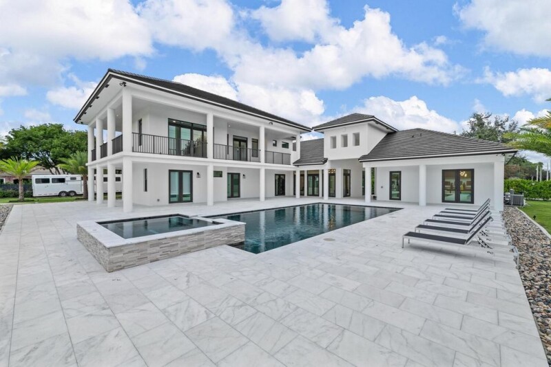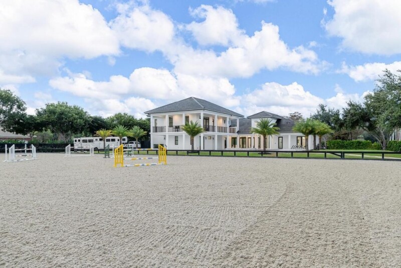 Exquisite Equestrian Estate in Wellington's Heart! Immerse yourself in the ultimate equestrian lifestyle within this breathtaking new construction estate. Nestled in the heart of Wellington, this stunning all CBS construction property boasts a 4-bedroom, 4.2-bathroom main house, accompanied by an upscale 1-bedroom, 1-bathroom attached guest house. World-Class Equestrian Facility complete with an impressive 12-stall CBS barn and high end arena with excellent footing.Luxurious main residence completed in 2022. The main house features soaring ceilings, expansive bedrooms, spacious walk-in pantry, large laundry room, extra storage rooms galore, open kitchen layout, and a three-car garage with ample storage for even a 26-foot boat.