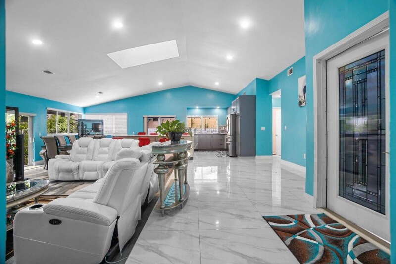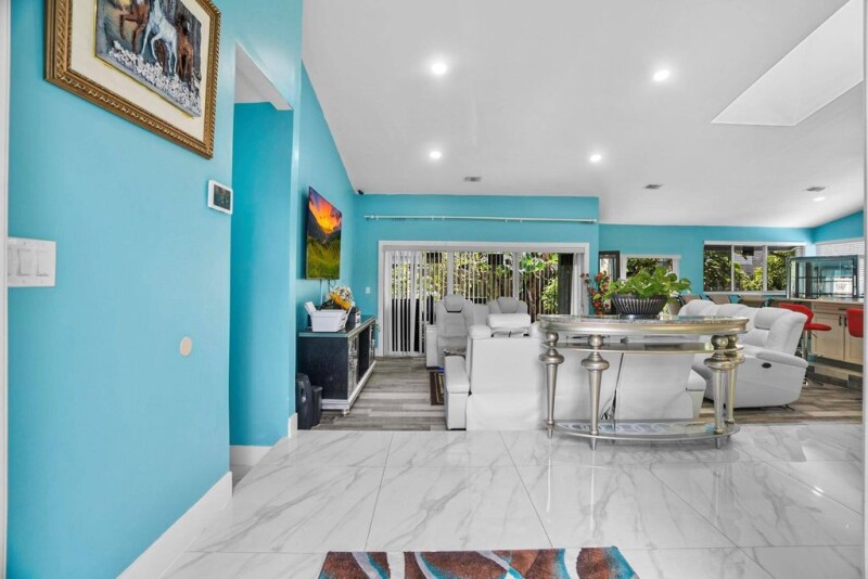 Discover this stunning 4-bedroom, 3-bath remodeled home, where modern elegance meets tropical charm! Surrounded by lush fruit trees, this bright and airy home features impact windows and doors, including a brand-new skylight. The spacious kitchen boasts a massive island, sleek downlights, newly installed pantry, stainless steel appliances, and a 4-door refrigerator. Enjoy ultimate relaxation in the refurbished, fully tiled pool, all within a fenced lot for added privacy. With a newer water heater, an ADT security system, no HOA & a Generator/ Four (4) Propane tanks this home is the perfect blend of style, comfort, and convenience!.