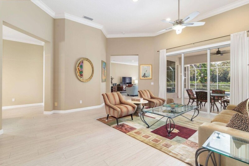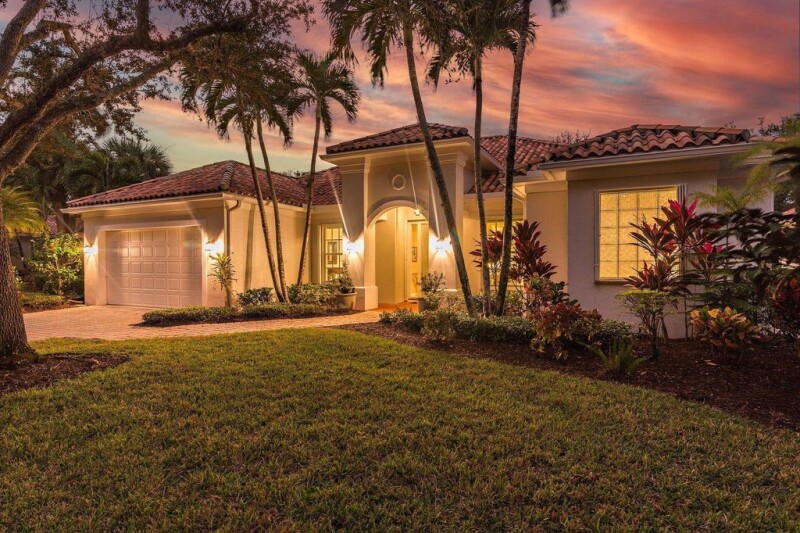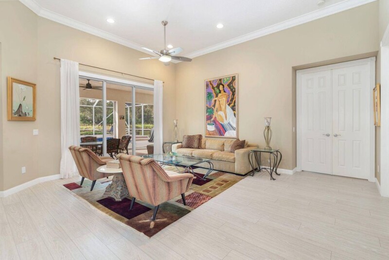 Waterfront paradise in Breakers West situated in the desirable Breakers Pointe cul-de-sac. 4 bedroom, 3 bath, 2774 living square feet complete with pool & hot tub. Pool resurfaced in 2022, A/C 2017, Hot water heater 2021. Ample natural light pours through the public rooms, offering unparalled sunset views. His & her baths, separate tub/shower. Office/den situated conveniently off the master bedroom with custom built ins. Complete accordion hurricane shuttersHOA includes: landscaping, tree trimming; cable and internet, alarm system monitoring, 2 manned guard gates and roving patrol, regular pressure cleaning to roof, gutters, driveway, sidewalks and exterior painting.Non-mandatory membership[s available at Breakers West Country Club, Breakers Ocean & Golf Club, and Mayacoo Lakes CC.