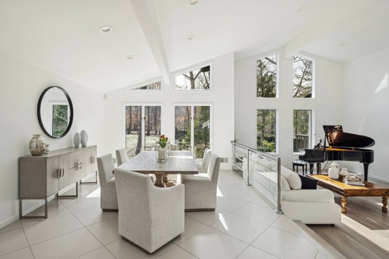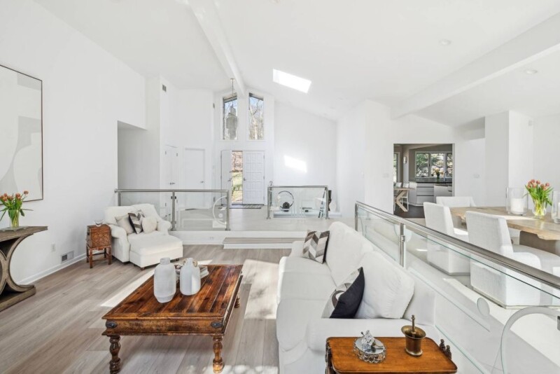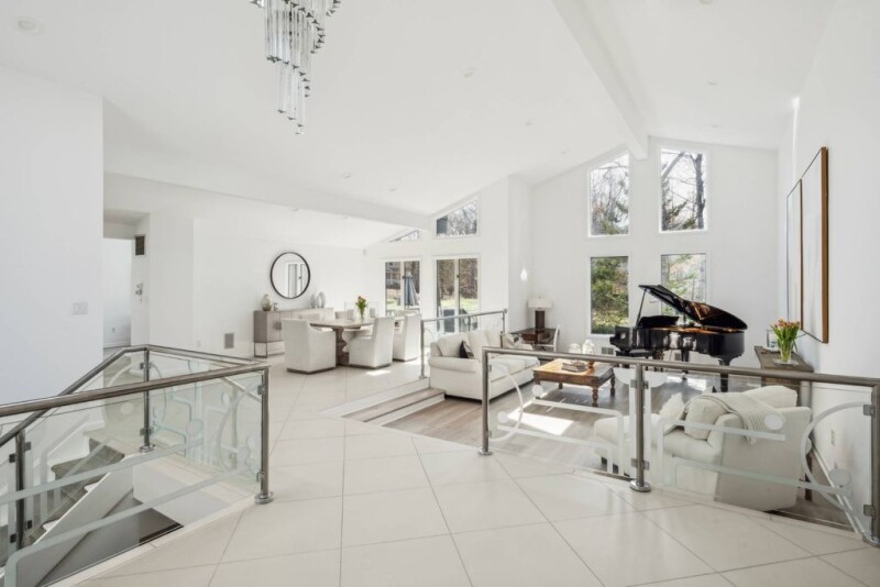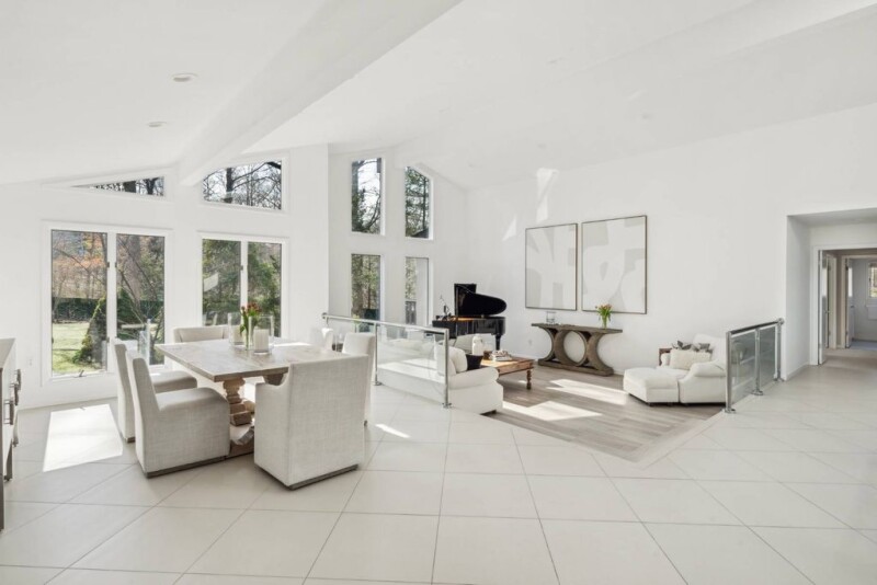 This sprawling modern contemporary home offers luxurious finishes and single-level living at its finest with 5,300 total square feet of finished space. Situated on a large, fenced in, level lot of 1.19 acres, you'll enjoy numerous amenities for an exceptional entertaining and living experience. Upon entry, you will be captivated by the soaring ceilings, clean lines and open living spaces that are drenched in tremendous natural light from the oversized windows and skylights. The beautiful wooded views are admired throughout all the seasons. Features include: an open floor plan with four bedrooms, three and one half baths, updated flooring, freshly painted, designer lighting, family room with sleek modern fireplace, and open living/dining rooms, a primary suite with walk in closet, private balcony, and a spa like bathroom with walk in shower, double vanity and jacuzzi tub, three Car Garage with new doors, circular driveway, full house generator, security system, newer roof, sprinkler system, AV system, water softener. The spectacular finished walk-out lower level offers amazing high coffered ceilings and an open floor plan, featuring a state-of-the-art gym, office with French doors, playroom, custom built entertainment bar, bedroom and full bathroom, ideal for parties and entertaining guests. Just 5 minutes to Route 78, shopping, top rated schools, including Pingry School, less than 30 minutes to Newark Intl Airport, and only 35 miles from lower Manhattan.