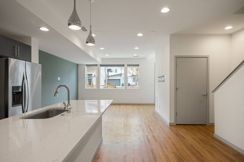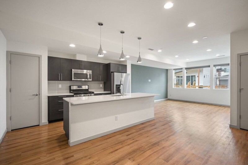 Totally unique development with 26 residences - 11 are townhomes. Like a hidden gem that's close to everything. Bike and walk to all your favorite places like Tennyson Street, Highlands and LoHi. Jump on the highway to beat the ski traffic. It's all super close! This enclave offers a lovely community garden and a path directly out to 38th. Enjoy the view from your spacious rooftop deck with view in multiple directions. With a calm urban contemporary vibe the open main floor has a large kitchen with eat-at center island, stainless steel appliances and gas stove and a pantry. The Living Area is light and bright with a wall of windows that overlooks a grassy area. Upstairs you'll find a large Primary Suite with large en-suite bath, custom walk-in closet and a private balcony. The second bedroom is en-suite with a full bath, it's own walk-in closet and another balcony. This unit is better than new with window coverings, storage systems, all appliances including front load washer and dryer, new carpet - it's perfect! Come see this one - it is special and it is the best!.