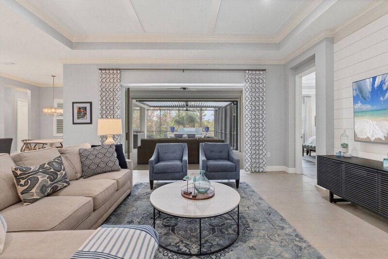 Motivated seller, don't miss out on this new $50K Price Improvement and receive a 1 year home warranty protection plan and 2 mounted televisions! Discover your new lifestyle in this stunning luxury home offering over 3,000 square feet of elegance and comfort. Unique and noteworthy features include a $48,000 custom built motorized remote controlled 12x20 StruXure Pergola and an EV 220v plug in charging station in the 3-car garage. Designed with an open floor plan, this residence features three spacious bedrooms, three baths and a large second-story bonus room, ideal for all your family needs. In a private preserve setting, this home blends tranquility and elegance. The heart of this Palm Island floor plan is the main living area surrounded by a beautiful great room, designated dining area and newly installed chef's kitchen. For the cooking enthusiast, this remodeled custom designed space includes upgraded stainless steel appliances with natural gas cook top and wall-mounted oven and microwave, Waypoint double-stacked cabinets with glass display doors, mood lighting, soft-close doors and drawers, pot and pan drawers, spice rack and cookie sheet pullouts, coffee bar, deco trimmed double storage island, tile backsplash, and Caesarstone Pebble countertops. Step through pocket sliding glass doors into your private oasis, where an extended lanai awaits. Enjoy the heated spa/pool for relaxing and a fully equipped outdoor kitchen for alfresco dining. You'll also enjoy peace of mind with the motorized Storm Smart hurricane screens to protect your outdoor living space without compromising style. Some noteworthy upgrades include plantation shutters throughout, designer lighting and fans, crown molding, beautiful custom woodwork and custom built walk-in closets. Be sure to inquire within for a full list of design features and upgrades. The amenity-rich community of Grand Palm is just moments from historic downtown Venice, offering the best of Florida living. A host of monthly activities await you along with three community pools, fully equipped fitness center, tennis, pickleball and miles of walking and biking trails. Experience the ultimate in luxury and convenience with high-end upgrades and thoughtful design at an affordable price. Don't miss this exceptional opportunity to own your dream home in paradise, so schedule your private showing today!.
