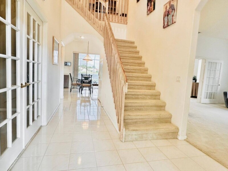 5 Bed, 4 bath home on one of the largest, best lots in this GATED Parkland community where the HOA includes lawn maintenance! This water-view lot gives perfect sunrises from a SOLAR heated screened PRIVATE POOL, and a newly landscaped lawn irrigated with water from the pond behind the home! Flooded with natural light, each large room works for an active household. Spa-like Primary Bath will relax even the most stressed house member. Walk-in closets throughout, huge laundry room and pantry are in addition to the ample attic space. Primary closet has more sqft than one of the bedrooms! Guest room on the first floor is tucked away next to a full bath that leads to the pool. Kitchen with island, Selistone counters and quiet Bosch dishwasher, lead to the Family Room with 2nd set of sliders!.