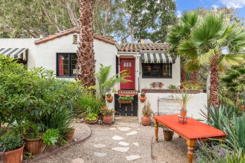 Rare opportunity to own this 1931 Mediterranean gem in Old Town Monterey, on an oversized, wooded lot at the end of Not a Through Street. 3 Bedrooms, detached Guest Bedroom, 2.5 Baths. Solid bones, original hardwood floors, wood framed windows, Carmel stone patio. The living room features a wood burning fireplace with hand-hewn Carmel stone, built-in bookcases, garden views and French doors leading to a chandelier-lit dining room. The original kitchen has a separate pantry and BBQ/picnic area. The primary bedroom and bath, added in 1994, are bathed in light from the walls of windows and French doors. Fully fenced-in grounds feature drought-tolerant gardens, and a large back yard with paved piazza for outdoor entertaining. There is a driveway with a separate parking pad, woodshed and gardening shed. You can be the third owner of this custom-built crown jewel, hidden away in the heart of Monterey.