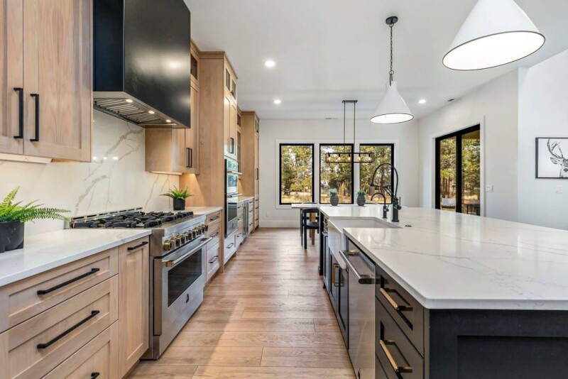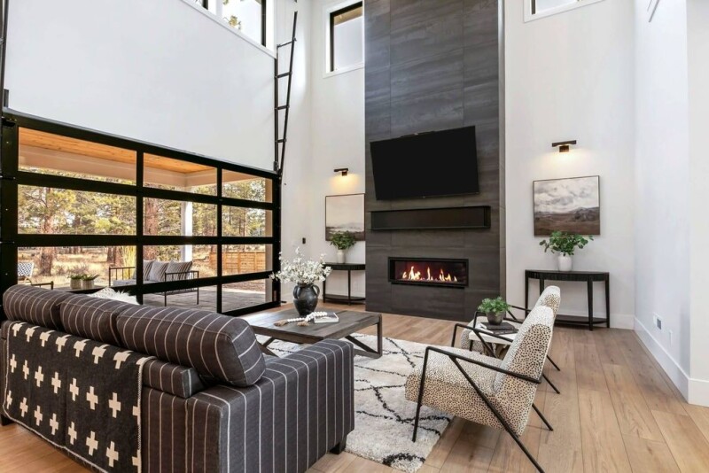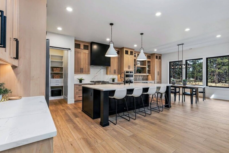 Discover the perfect blend of nature and luxury in this custom retreat set on 2.5 tranquil acres. Designed with meticulous attention to detail, this home offers both privacy and breathtaking scenery. The open-concept living area flows seamlessly from a cozy gathering space with a propane fireplace to a chef's kitchen, complete with an oversized island, double ovens, a wine bar, and a built-in refrigerator. A spacious butler's pantry enhances functionality. The main level boasts a generous primary suite with a private patio, along with a versatile den. Upstairs, three additional bedrooms and a bonus room provide ample space. Outdoor living is a highlight, featuring a covered paver patio and a fire pit for year-round enjoyment. The expansive lot offers room for a shop or ADU, while the attached three-car garage includes a workshop, a 10-foot door on the third bay, and a vaulted middle bay. Located just outside Bend city limits, this home showcases modern finishes.